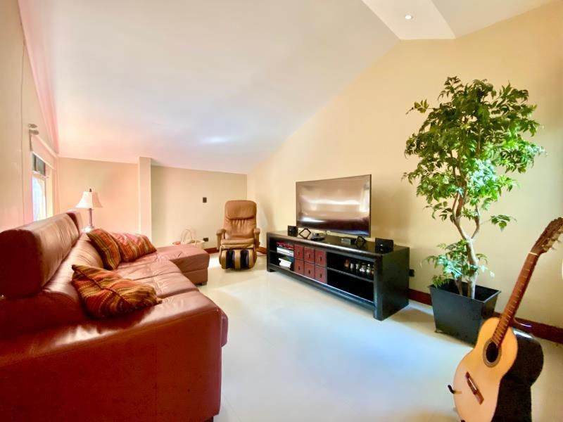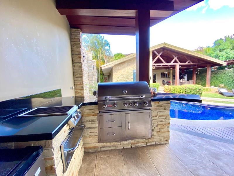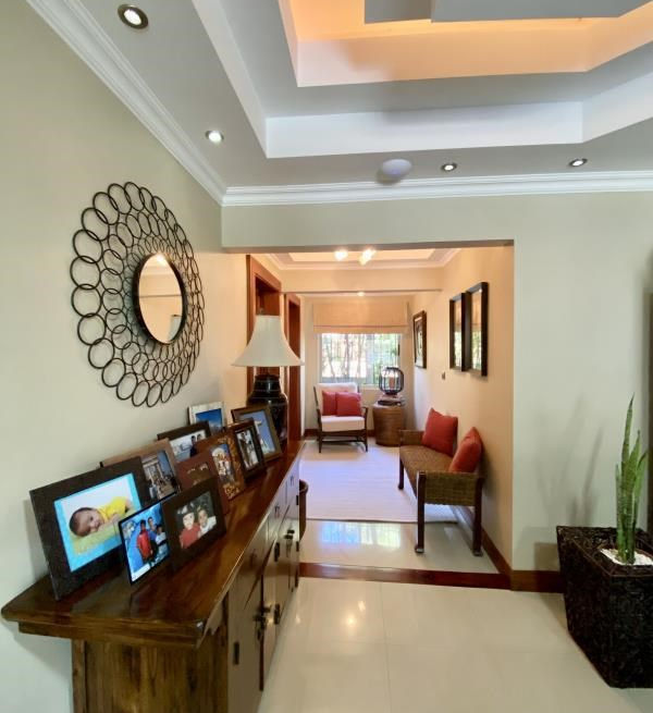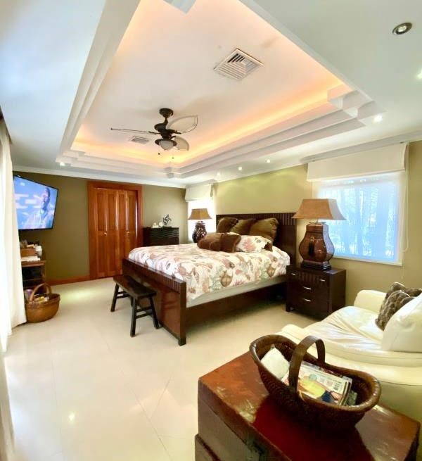Al entrar a la casa, se puede apreciar la doble altura rematada con sus techos artesonados de madera Almendro. El diseño de la propiedad ofrece fácil acceso a la casa, las habitaciones por ser toda un primer nivel, cuenta con 5 habitaciones, 4.5 baños, Cocina gourmet con barra de desayuno; Comedor formal; Detalles de madera que incluyen pasamanos, tocadores, armarios y gabinetes. La cocina totalmente equipada con gabinetes de madera y encimeras de granito que dan a la sala de estar, además cuenta con una sala de lectura y televisión ,con garaje para dos autos, área de lavandería, habitación de servicio doméstico,con área con BBQ y su hermosa piscina con un rancho donde podrá disfrutar y relajarse
